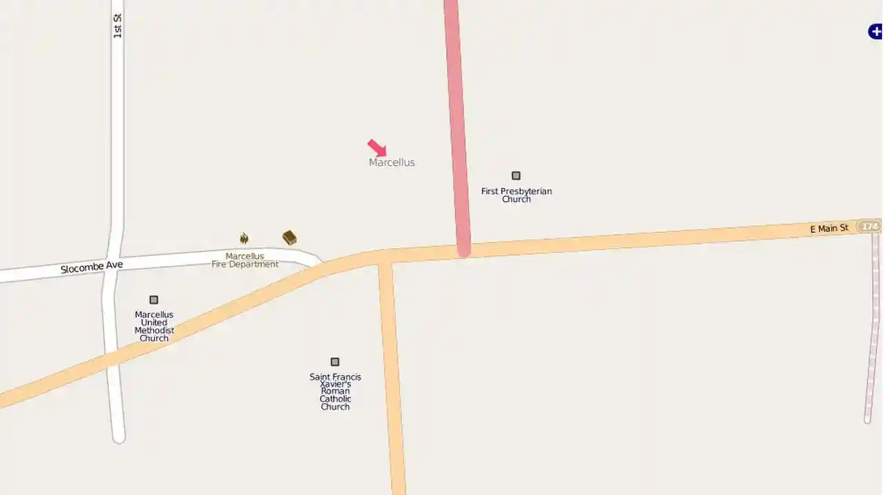 The First Presbyterian Church of Marcellus is a local Presbyterian church in the village of Marcellus, New York. Located at the intersection of North Street (New York State Route 174) and East Main Street (also NY 174) in downtown Marcellus. The church is the oldest and one of four churches in the village alone. The original formation of the church dates back to October 1801, when the Reverend Caleb Alexander was successful in creating an 18-member church in Marcellus known as the Church of Christ. Two years later, a wooden meeting house was constructed, but was not the normal style for a regular church. Levi Parsons was the reverend for several decades, starting in 1807 to 1841, when he was replaced by a new pastor. Read more on Wikipedia