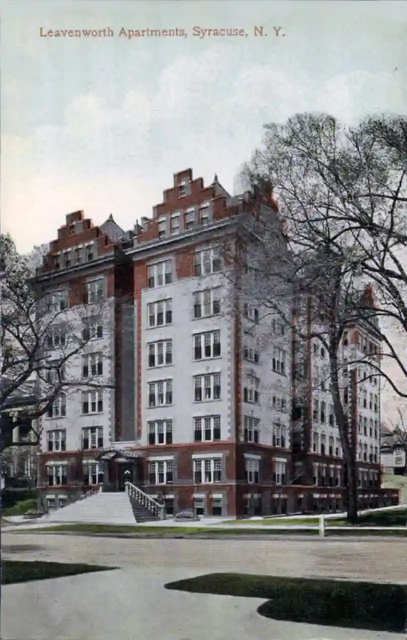 Leavenworth Apartments is a historic apartment building located in the Near Northeast neighborhood of Syracuse, Onondaga County, New York. It was designed by architect Charles Erastus Colton and built in 1912. It is a seven-story, Colonial Revival style asymmetrical building in six sections. It is a steel frame and masonry building with cast stone details. The building features stepped gable ends. It is located across from the New Kasson Apartments built in 1898. Note: This includes See also: Read more on Wikipedia
