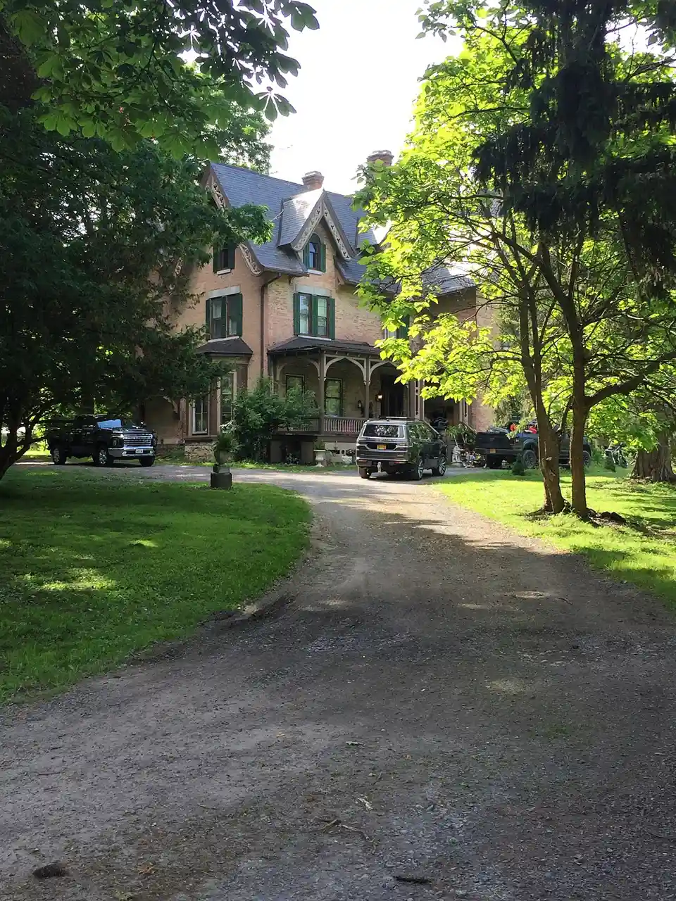 Ashcroft is a historic home located at Geneva in Ontario County, New York. It is a -story brick home with a high pitched slate roof with projecting eaves. It is a large Gothic Revival style country house set deep in the midst of once carefully landscaped grounds. The house and property were designed by Calvert Vaux in 1862. Includes accompanying seven photos from 1973-75. Read more on Wikipedia