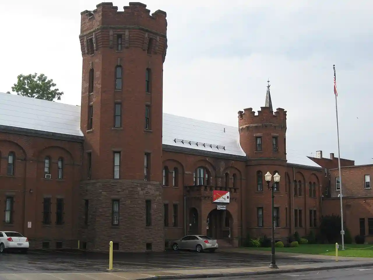 Geneva Armory is a historic National Guard armory building located at Geneva in Ontario County, New York. The armory consists of a long, shallow, rectangular, five-story, hip-roofed administration building with an attached -story, rectangular gable-roofed drill shed. The original section of the administration building was built in 1892 and designed by architect Isaac G. Perry. It was tripled in size in 1906 and the addition included a slightly off-center 10-sided, -story castle-like tower. See also: Read more on Wikipedia