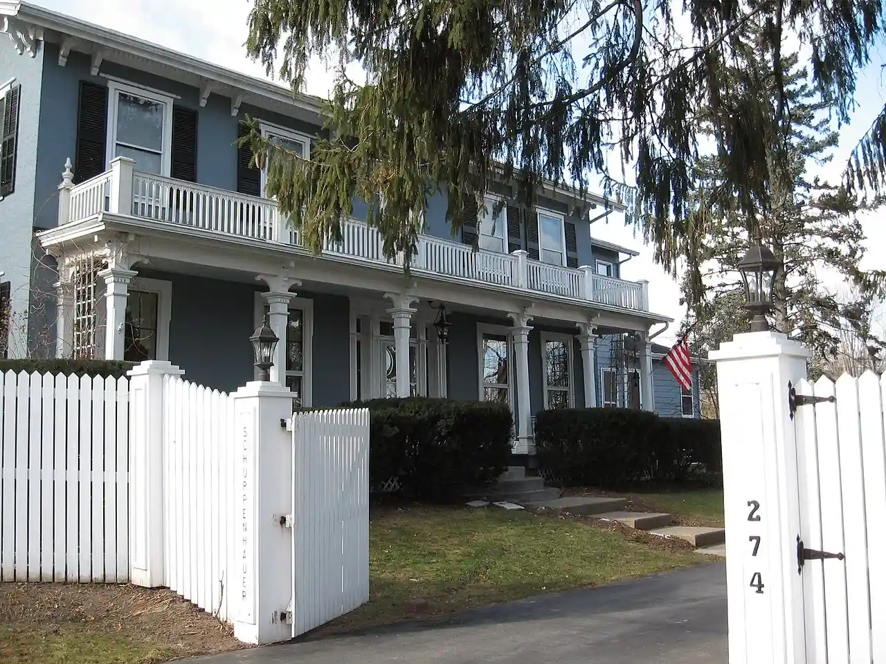 Marshall House is a historic home located at Canandaigua in Ontario County, New York. It is a two-story, five bay center hall brick dwelling on a slightly raised basement. Although built in 1844 with later alterations, it has characteristics of the Federal style. Read more on Wikipedia