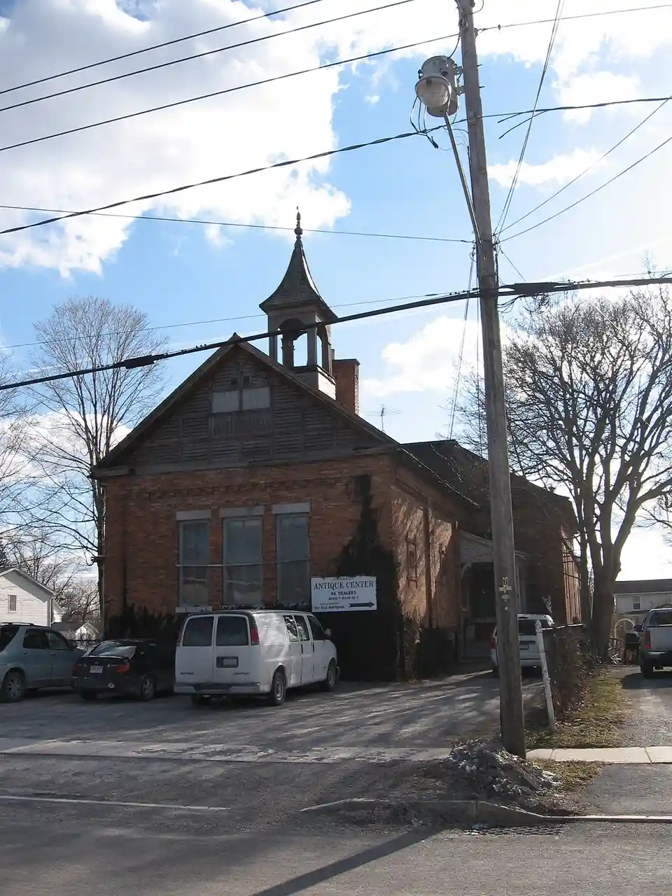 Saltonstall Street School is a historic school building located at Canandaigua in Ontario County, New York. The original section of the school was built in 1875, with a major addition constructed in 1890 and is a one-story, polychrome brick structure on a raised basement. It features a variety of picturesque late 19th century decorative features in the Queen Anne style, such as a multi-gabled roof surmounted by a louvred cupola. It is a typical example of a late 19th-century ward school, along with the Adelaide Avenue School. Read more on Wikipedia