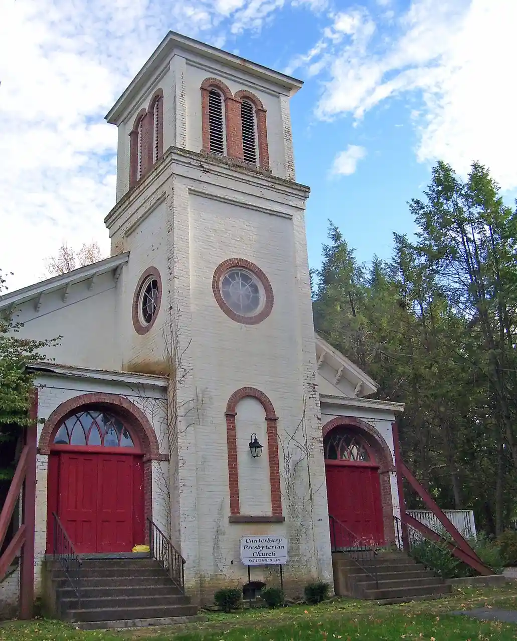 Canterbury Presbyterian Church is located along Clinton Street in downtown Cornwall, New York, United States. It is a white stone and brick building in the Federal style, with later additions in a Colonial Revival style consistent with the earlier structure. Since 1996 it has been listed on the National Register of Historic Places. Read more on Wikipedia