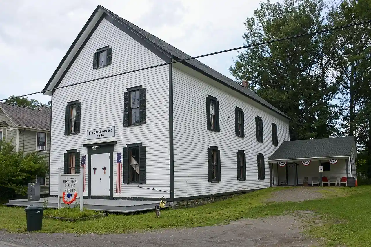 Fly Creek Grange No. 844, also known as Fly Creek Historical Society and Museum, is a historic Grange Hall located at Fly Creek in Otsego County, New York. It was built in 1899, is a large -story, gable-roofed, rectangular frame structure, 30 feet wide and 80 feet deep. It is sheathed in clapboard siding and rests on a cut stone and rubble foundation. Note: This includes and Accompanying four photographs It is located within the boundaries of the Fly Creek Historic District. Note: This includes and Accompanying 29 photographs Read more on Wikipedia