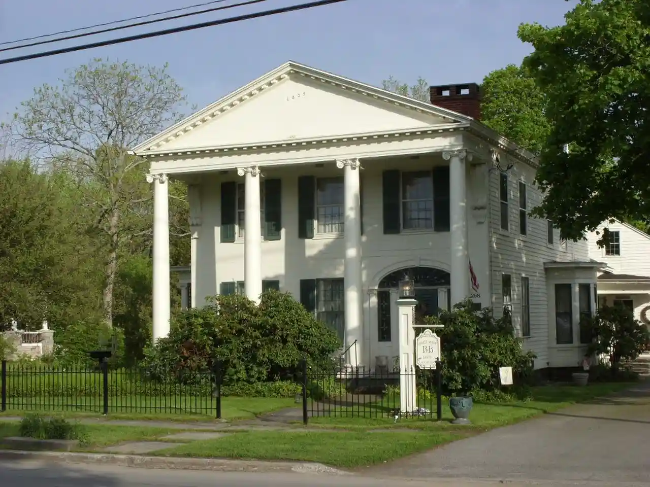 Roswell Wright House is a historic home located at Unadilla in Otsego County, New York, United States. It was built originally in 1823 and is a dwelling in the Greek Revival style. It is a two-story, timber frame, rectangular, temple-front dwelling with a series of later additions off the rear. The front features a portico supported by four wood columns with Ionic order capitals. See also: Read more on Wikipedia