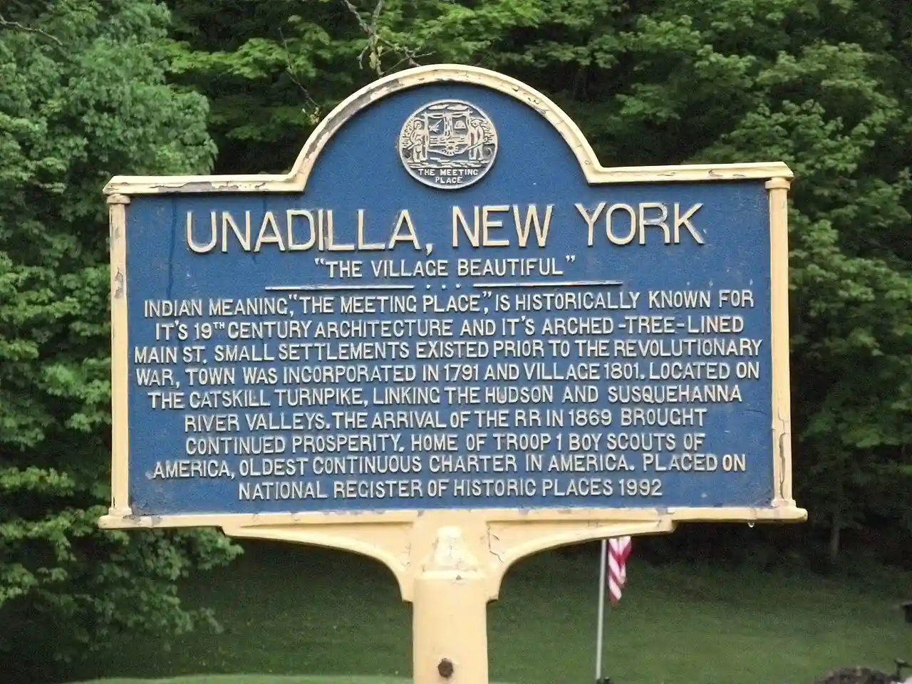 Unadilla Village Historic District is a national historic district located at Unadilla in Otsego County, New York. It encompasses 145 contributing buildings, two contributing sites, one contributing structure, and three contributing objects. the majority of the buildings are residential (79, with 41 contributing dependencies), with four churches, 11 commercial buildings, six institutional and/or public buildings, one historic cemetery, three monuments, and a limestone railroad underpass. See also: Read more on Wikipedia