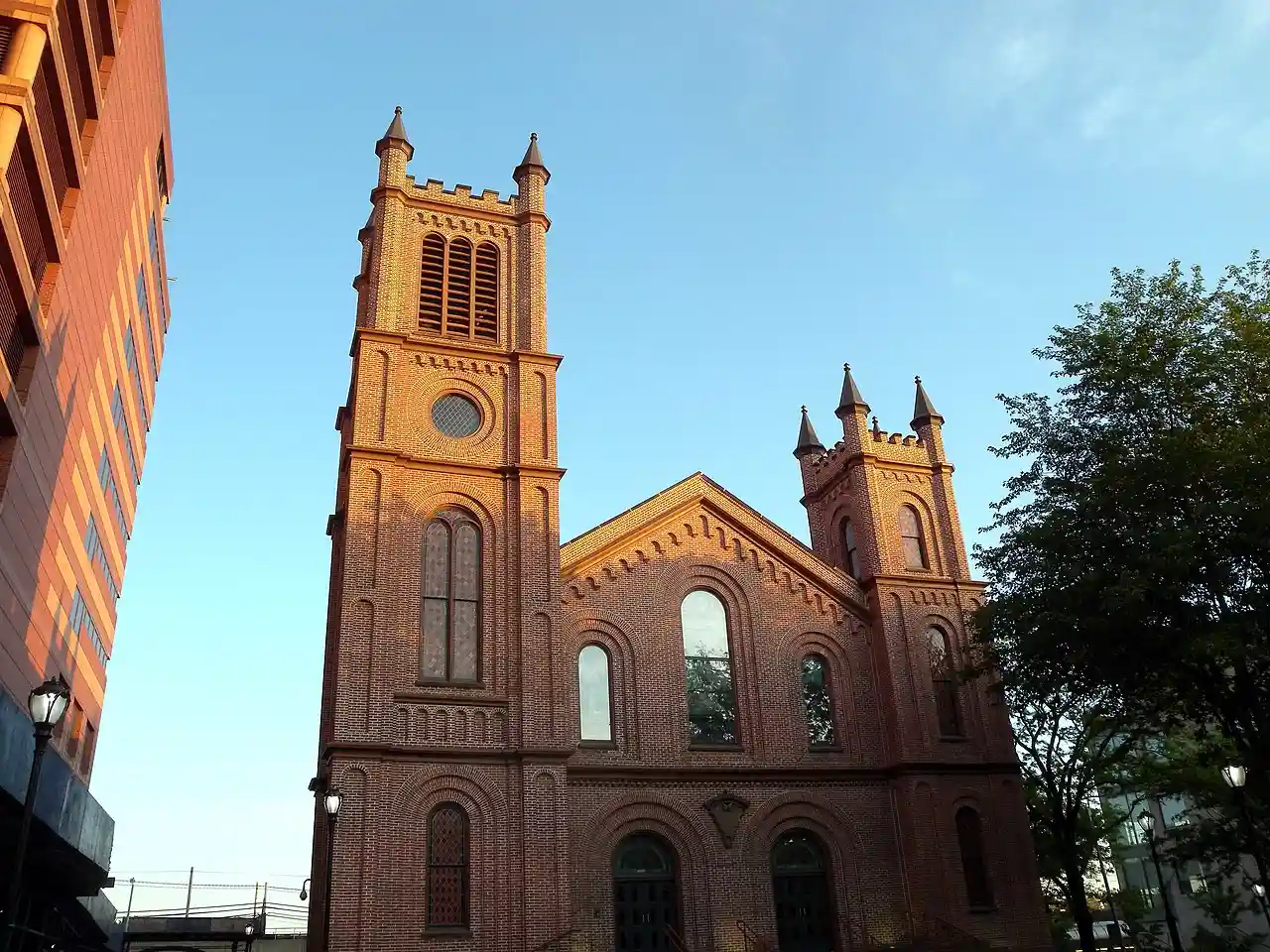 The First Reformed Church is a historic Reformed church in the Jamaica neighborhood of the New York City borough of Queens. The church was built in 1859. The church has an early romanesque structure that was designed by Sidney J. Young and built by Anders Peterson. See also: The First Reformed Church has been refurbished as part of the Jamaica Center for Arts & Learning. Read more on Wikipedia