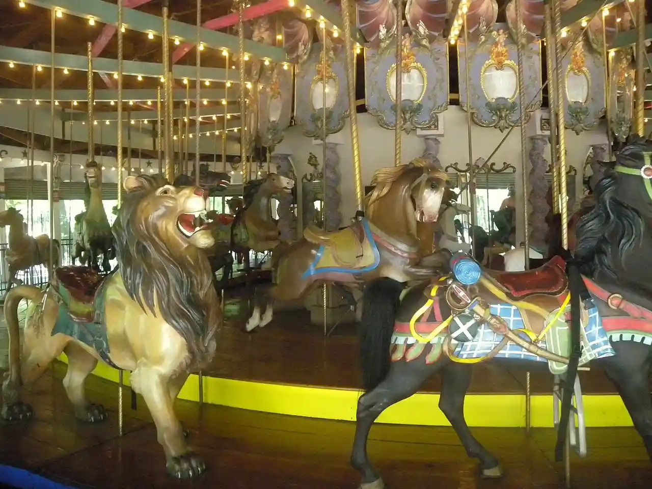 The Forest Park Carousel is a historic carousel at Forest Park in Queens, New York City. The carousel, one of two known surviving carousels built by Daniel Carl Muller, was built and contains 52 figures and its original band organ. See also: Originally located in Dracut, Massachusetts, the carousel was relocated to Forest Park in 1972, replacing an earlier carousel on the site. The ride, operated by NY Carousel since 2012, is part of a seasonal amusement center called Forest Park Carousel Amusement Village. The Forest Park Carousel was listed on the National Register of Historic Places in 2004 and has been a New York City designated landmark since 2013. Read more on Wikipedia