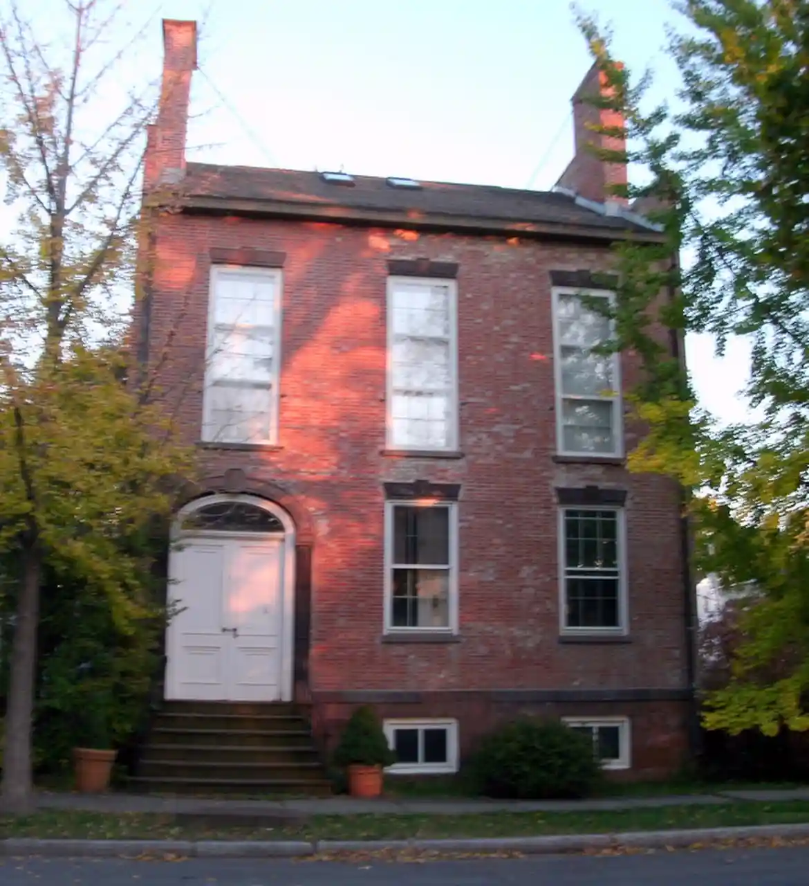 Aiken House is a historic home located in Rensselaer in Rensselaer County, New York. It was built about 1816 and is a -story, rectangular, brick townhouse dated to the Federal period. It has a -story rear wing. It features stepped gable sides. It was built by the founder of the City of Rensselaer, William Akin, and designed by noted Albany architect Philip Hooker (1766-1836). See also: Read more on Wikipedia