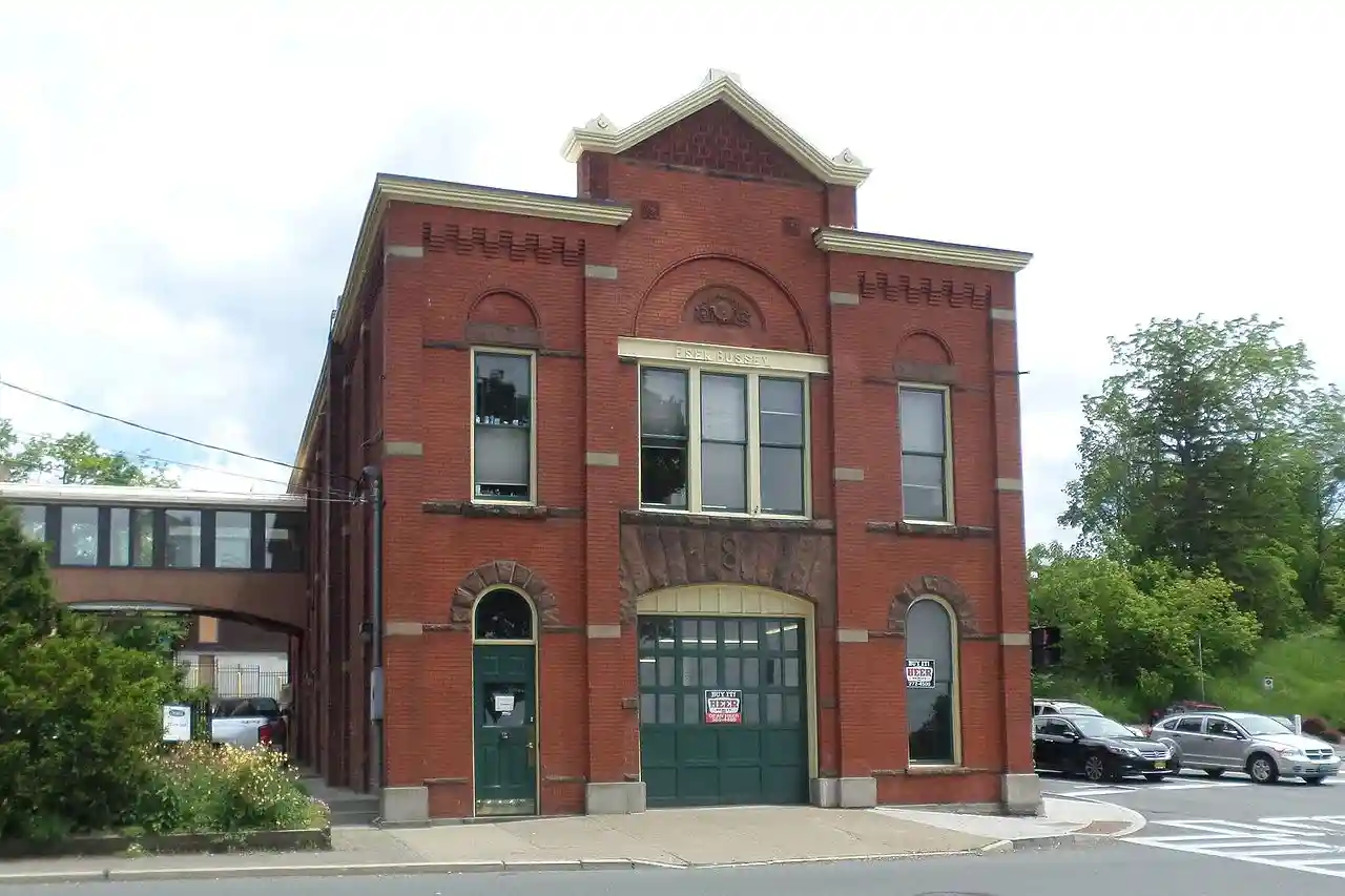 Esek Bussey Firehouse, now known as Engine Company 8 or Pumper Number 8, is a historic fire station located at Troy in Rensselaer County, New York. It was built in 1891-1892 and is a two-story, red brick building. It features a corbeled brick frieze, flat roof, rusticated stone work, and terra cotta detailing. See also: Read more on Wikipedia