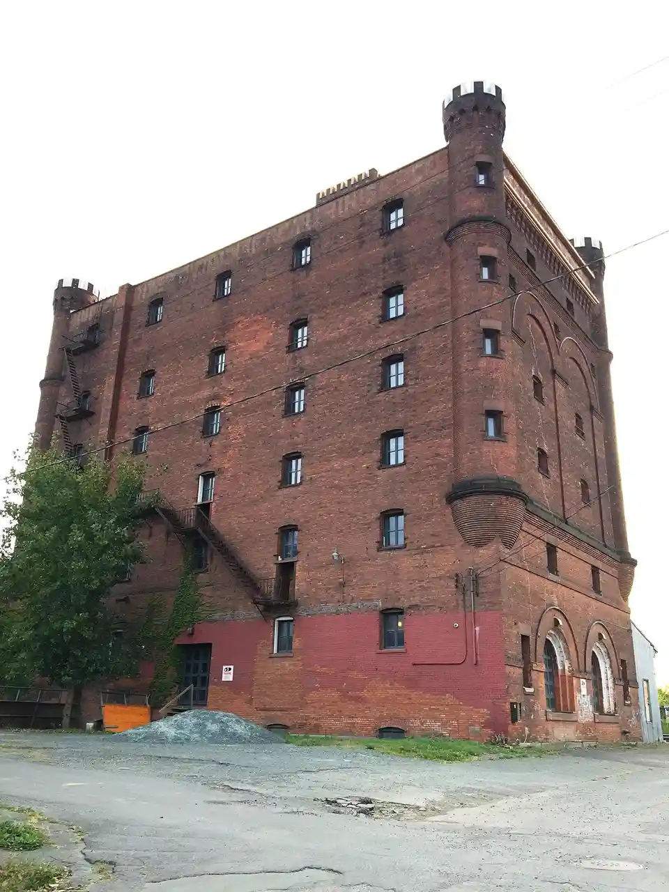 United Waste Manufacturing Company Building, also known as the Hudson River Terminal Warehouse Company and "The Fortress", is a historic warehouse building located at Troy, Rensselaer County, New York. It was built about 1902, and is a six-story, load bearing masonry building in the Romanesque Revival style. It features castellated detailing, three blind arcades, crenellated corner towers, and a prominent main tower that resembles castle keep. Note: This includes and Accompanying photographs Read more on Wikipedia