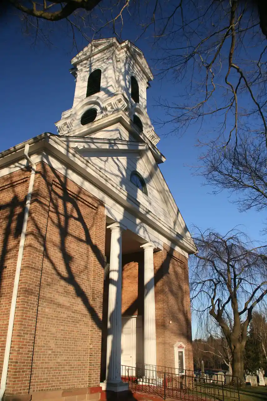 The Brick Church Complex is a historic Dutch Reformed church at Brick Church Road and NY 306 in New Hempstead, Rockland County, New York. The complex consists of the church, cemetery, school, and superintendent's house. The church was built in 1856 and has three brick elevations and a stone rear elevation. It features a large wood frame bell tower built in the late 19th century. Note: This includes and It was listed on the National Register of Historic Places in 1984. Read more on Wikipedia