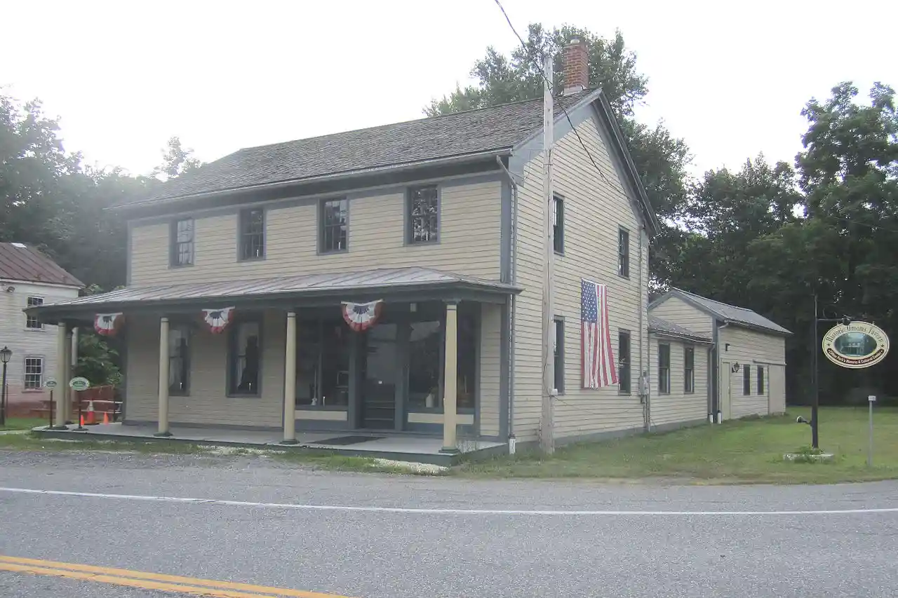 Grooms Tavern Complex is a historic tavern located at Grooms Corners in Saratoga County, New York. The complex consists of the tavern, a wagon and blacksmith shop, and a frame privy. The tavern building was built about 1825 and is a 2-story, timber-framed, gable-roofed building in a vernacular Federal style. It consists of a main block with -story, frame kitchen wing in the rear. When expanded to two stories in the 1840s, a Greek Revival style cornice was added. The building was partially remodeled in the late 19th and early 20th centuries. The tavern building was also operated as a general store. The wagon and blacksmith shop was constructed in the 1840s and is a 2-story, rectangular, timber-framed building with a gable roof in the Greek Revival style. See also: Read more on Wikipedia