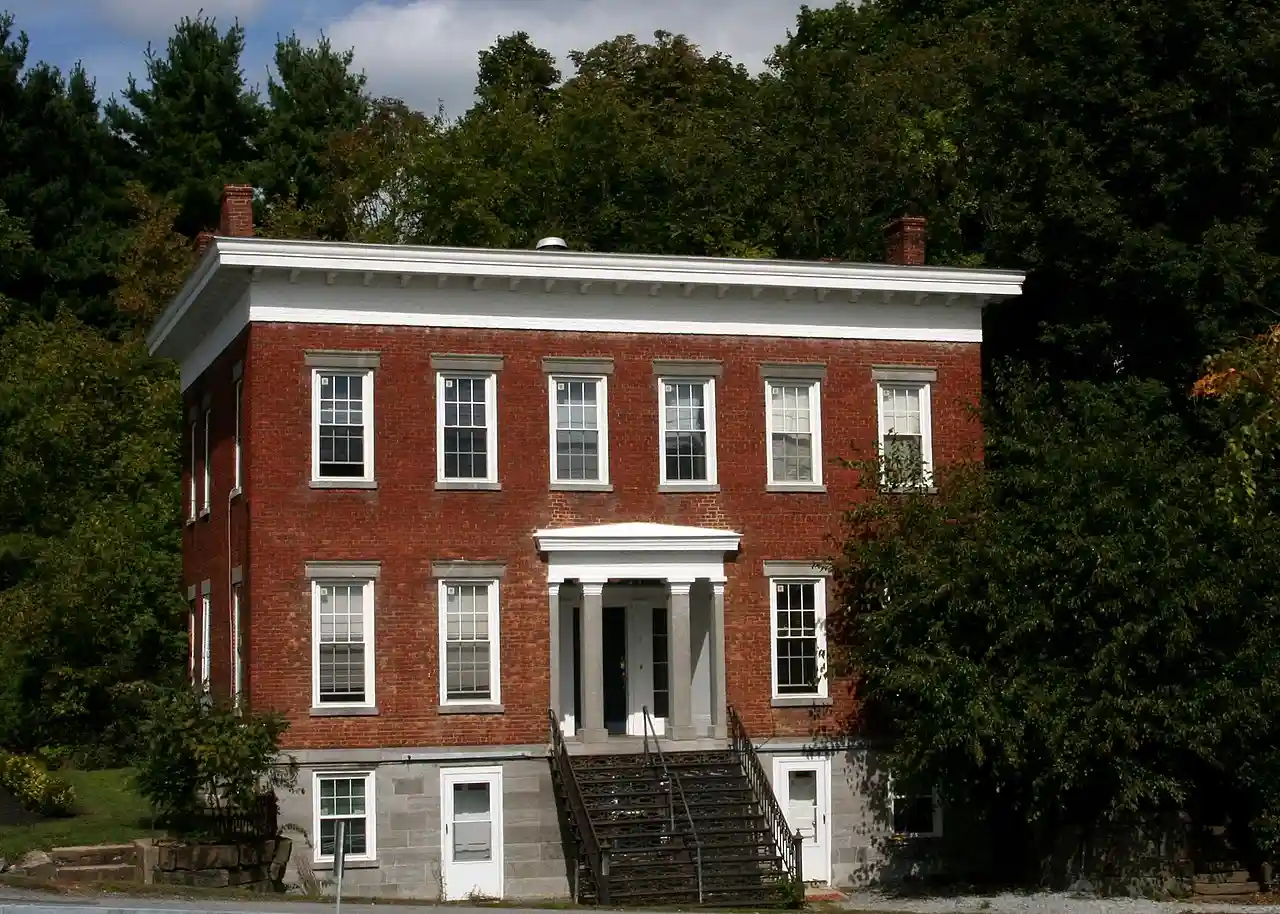 Noxon Bank Building is a historic bank building located at Crescent in Saratoga County, New York. It was built in 1842 and is a three-story, square, hipped roof structure of brick and stone in the Greek Revival style. There is a two-story, hipped roofed brick wing. The entrance features cut limestone Tuscan order columns and pilasters. See also: Read more on Wikipedia