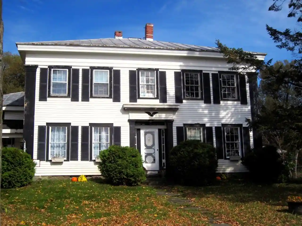 A. D. (Boss) Jones House is a historic home located at Duanesburg in Schenectady County, New York. It was built about 1860 by noted master carpenter Alexander Delos "Boss" Jones. It is a two-story, five-bay frame farmhouse in a late-Greek Revival style with Italianate features. It features innovative stacked plank construction, a hipped roof, a wide frieze, and broad corner pilasters. Also on the property are two contributing barns and a shed. Read more on Wikipedia