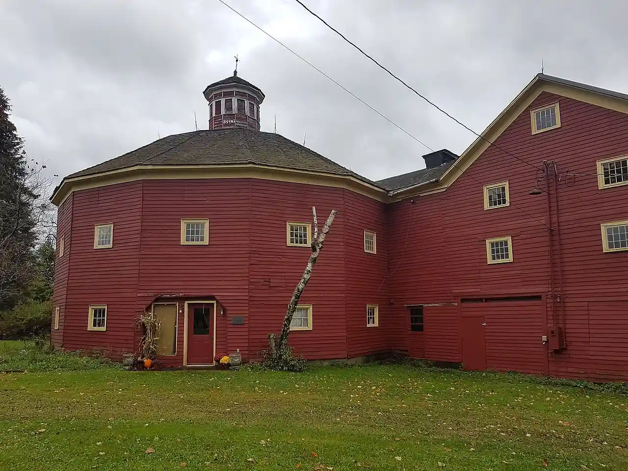 Parker 13-Sided Barn is an officially registered historic barn nestled in the hamlet of Jefferson in Schoharie County, New York. It is located on State Route 10 between Harpersfield and Stamford. The barn has a long and colorful history, built in 1896 and one of only two 13-sided barns listed in the National Register of Historic Places in this area of New York state. It meets the definition of being a round barn. Read more on Wikipedia