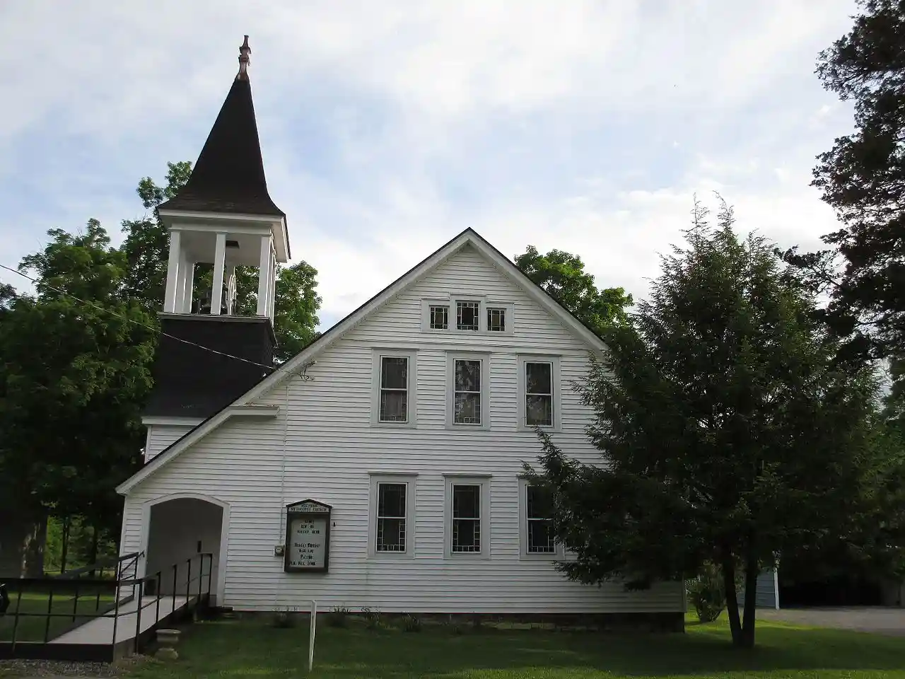 West Fulton Methodist Church is a historic Methodist church located in Fulton, Schoharie County, New York. It was built in 1906, and is a two-story, rectangular, Late Victorian style frame church. It has a broad front gable roof and sits on a limestone foundation. The front facade features an asymmetrically placed multi-stage bell tower. The interior is based on the Akron plan. Note: This includes and Accompanying photographs Read more on Wikipedia