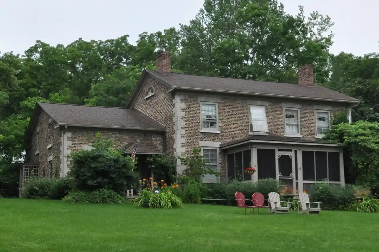 Julius and Harriet Bull House, also known as Ferry Farm, is a historic home located at Seneca Falls in Seneca County, New York. The house is a four bay wide, two story cobblestone house. It was built in 1830 and the facade is constructed of variously sized and colored field cobbles. The house is among the approximately 18 surviving cobblestone buildings in Seneca County. The house is believed to have been used as a stop on the Underground Railroad. Also on the property is a contributing carriage barn / workshop.See also: Read more on Wikipedia
