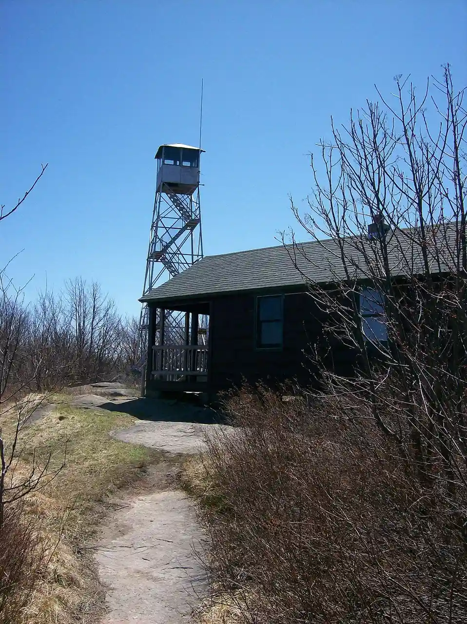 The Arab Mountain Fire Observation Station is a historic fire observation station located on Mount Arab at Piercefield in St. Lawrence County, New York. The station includes a , steel frame lookout tower erected in 1918, an observers cabin built about 1948, a trace of the foundation of the original cabin, a structure probably used as a root cellar in the 1940s, and the foot trail. The tower is a prefabricated structure built by the Aermotor Corporation and provided a front line of defense in preserving the Adirondack Forest Preserve from the hazards of forest fires. See also: Read more on Wikipedia