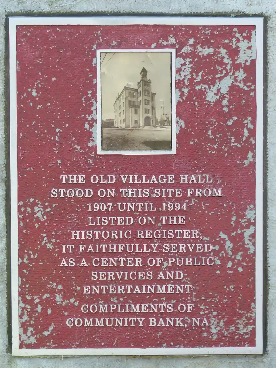 Addison Village Hall was a historic village hall located at Addison in Steuben County, New York. It was built in 1906 and is a four-story, greyish brown brick rectangular structure. The facade featured a projecting center pavilion that reaches five stories and is flanked by identical two story, one bay wings. See also: It was demolished in 1994 and the site is now occupied by the Old Village Hall Memorial Park. Read more on Wikipedia