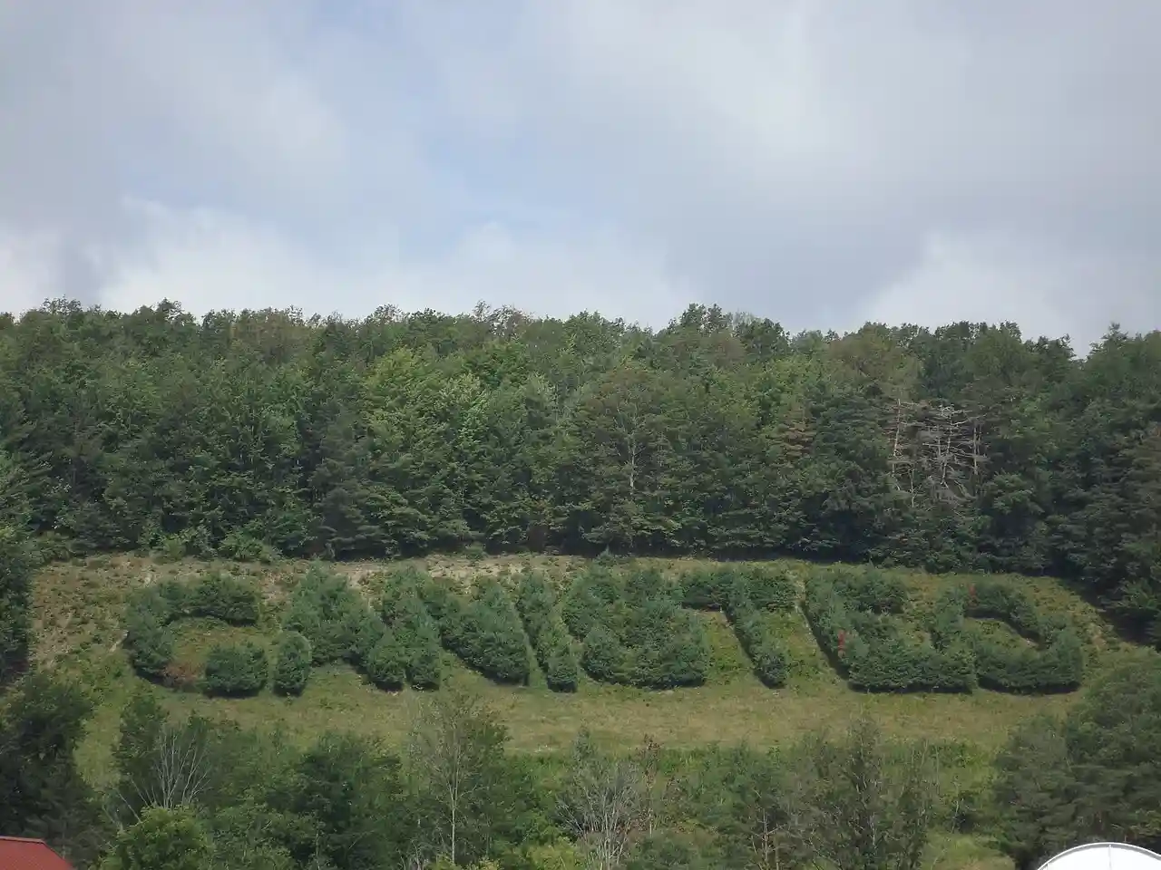 The Canisteo Living Sign is a historic civic project that was built by Ed Childs and Harry Smith, donated to the Canisteo School District, that also served as a navigational aid, located at Canisteo in Steuben County, New York. The sign consists of a set of 260 pine trees that spell out the name "Canisteo." They occupy a space approximately long and wide. The sign was originally laid out in 1933. See also: The sign was cleared in April 2016 and subsequently replanted beginning in May 2016 due to a number of dead and dying trees. Read more on Wikipedia