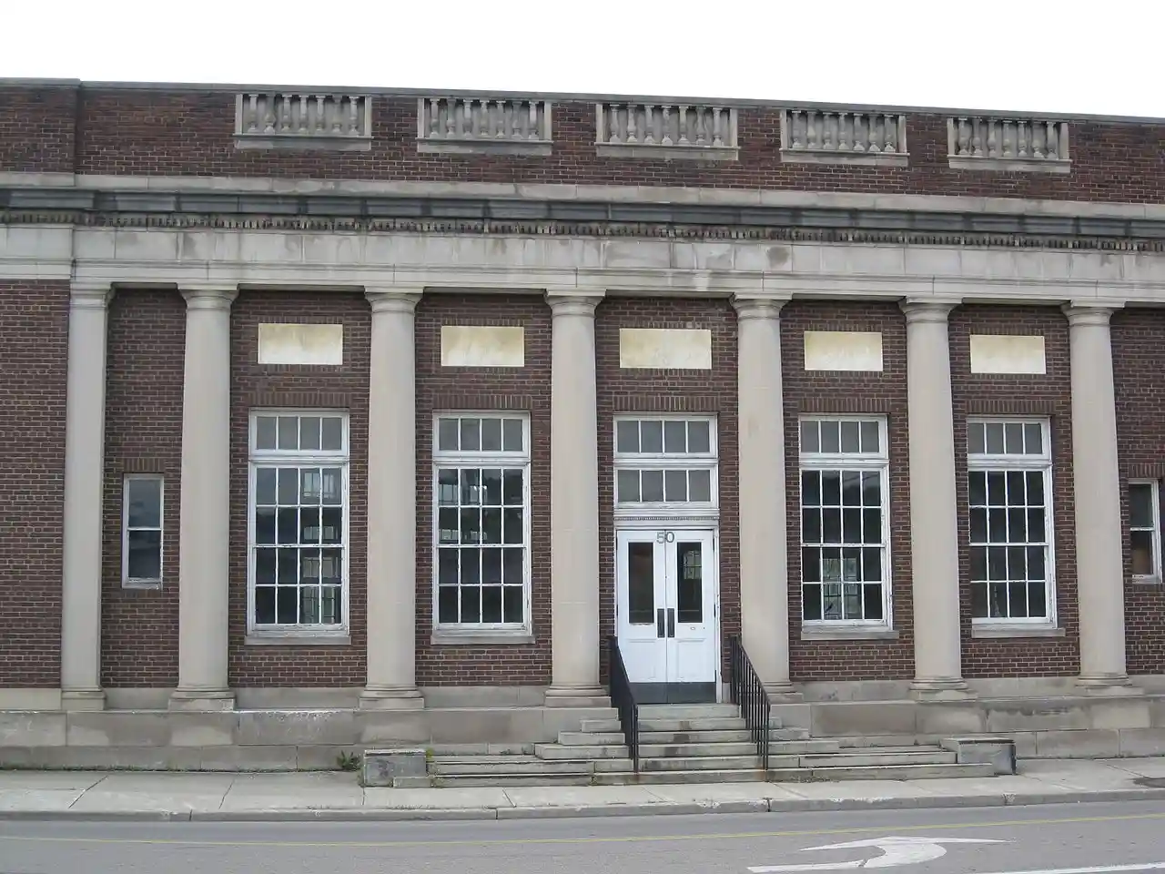 The former U.S. Post Office in Hornell, Steuben County, New York, United States, is located on Seneca Street. It was built in 1916 and is one of a number of post offices in New York State designed by the Office of the Supervising Architect of the Treasury Department, James A. Wetmore. It is a neo-Georgian, Colonial Revival style structure. It was vacated by the post office in 1965 and served as offices for the Hornell Board of Education and District Administration until 1989. Note: This includes and Accompanying eight photographs In 1996 it was purchased by Jerome S. O'Connor, and it was listed on the National Register of Historic Places in 1997. Read more on Wikipedia