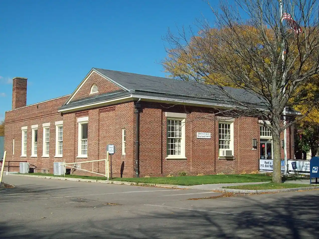 US Post Office-Painted Post is a historic post office building located at Painted Post in Steuben County, New York. It was designed in 1937 and built in 1937-1938 and is one of a number of post offices in New York State designed by the Office of the Supervising Architect of the Treasury Department, Louis A. Simon. It is a one-story, three bay structure clad in red brick in the Colonial Revival style. The interior features a 1939 mural by Amy Jones titled "Recording the Victory" and depicting a Revolutionary War scene. See also: Read more on Wikipedia