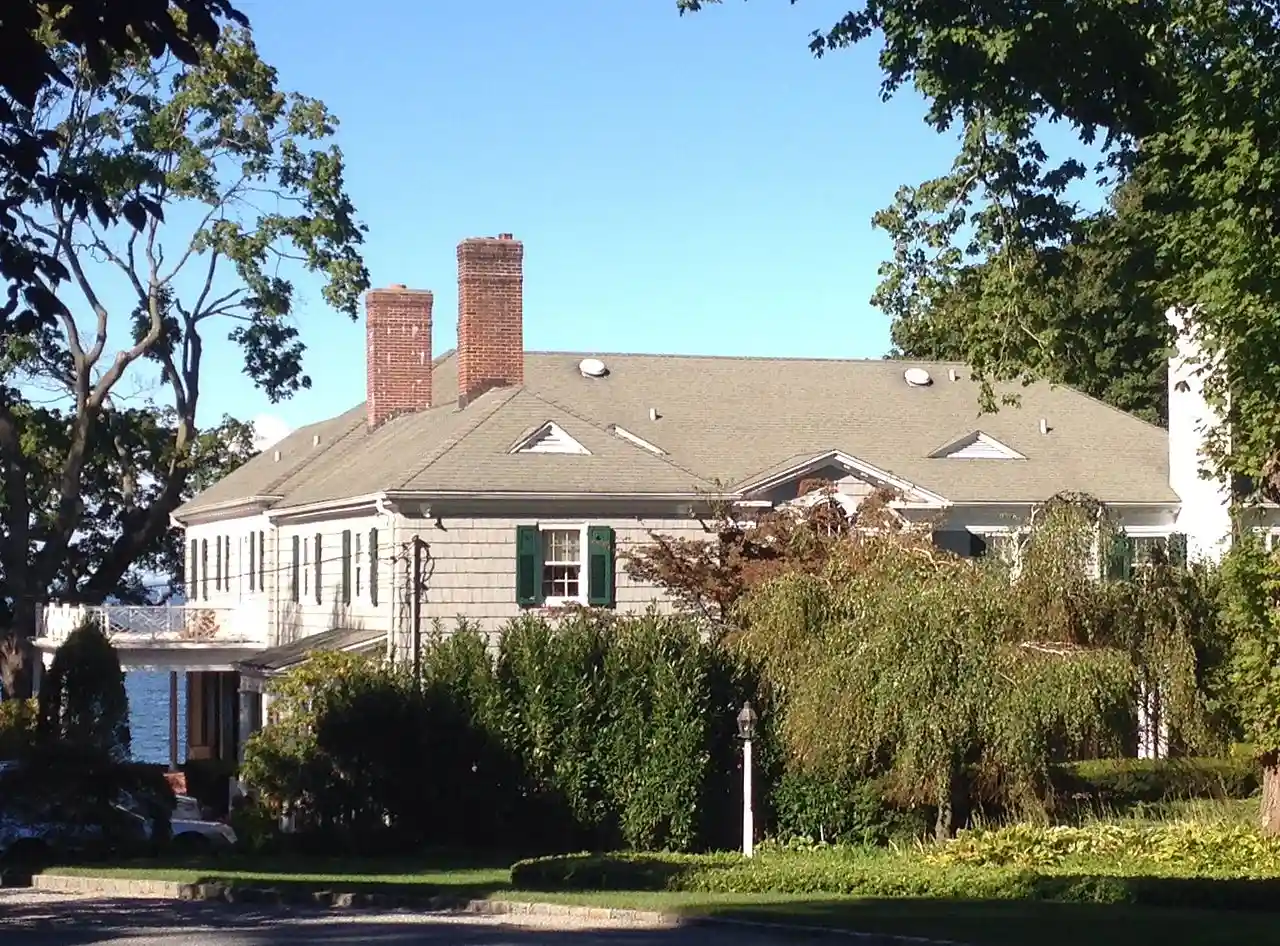 A. P. W. Kennan House is a historic home located at Huntington Bay in Suffolk County, New York. It was built about 1900 and is a large, -story, L-shaped, shingled, hip-roofed dwelling. It features a gable-roofed pavilion on the east side and a massive second floor Palladian window. It is representative of the Colonial Revival style. Also on the property is the building containing the original garage / servant's quarters. Read more on Wikipedia