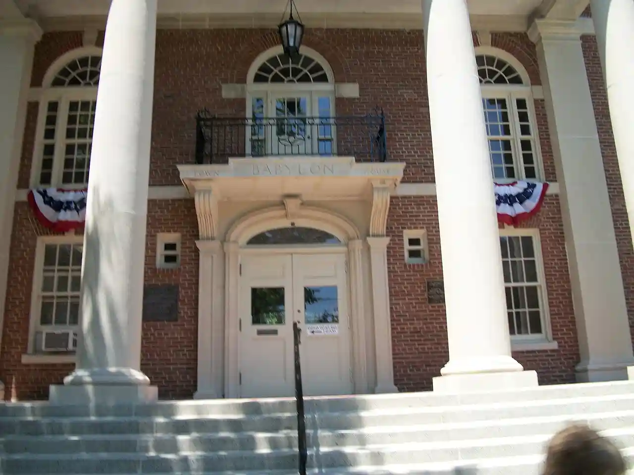 Babylon Town Hall, also known as Town of Babylon Old Town Hall, is a historic town hall located at Babylon in Suffolk County, New York. It was built in 1917 and is a -story Classical Revival style building with a low hipped roof. It is rectangular in shape, approximately 58 feet long and 54 feet wide. It features a cupola at the center of the roof and a large 2-story portico with four Doric order columns. It housed town offices until 1958, and housed district courts until 1979, when it was sold. Old Town Hall was purchased back by the town in June 2004 and rededicated on Sunday, October 24, 2004. See also: and: Read more on Wikipedia