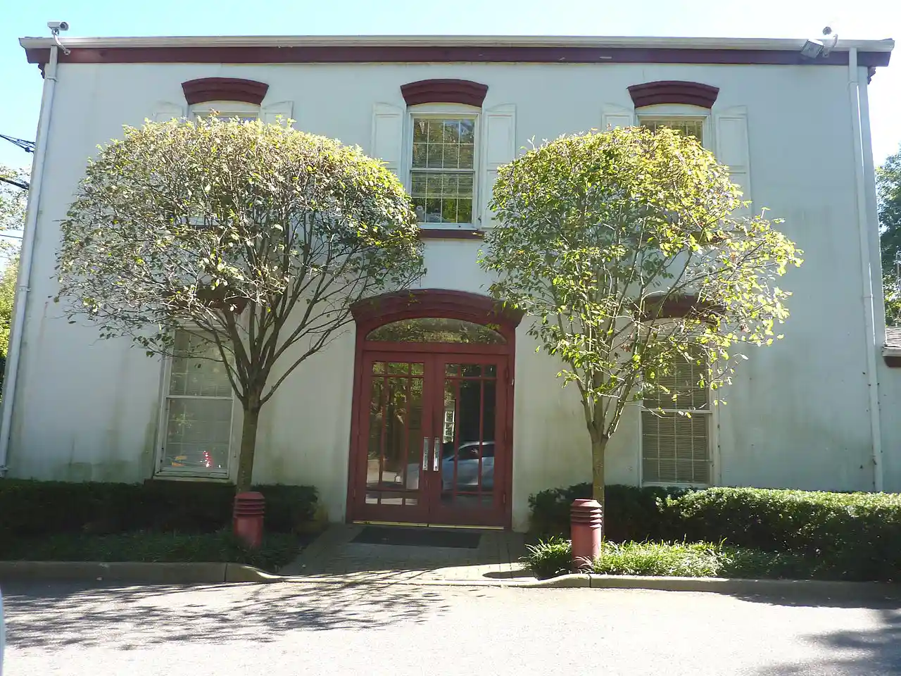 Dowden Tannery is a historic tannery building located at Cold Spring Harbor in Suffolk County, New York. It was built about 1840 and is a three bay, two story brick structure coated in stucco. Two, one story gable roofed side additions were built in the early 20th century. The tannery is located in a residential area southeast of Woodbury Road, and east of Cold Spring Harbor Railroad Station. Long Island Rail Road's Port Jefferson Branch runs behind the building, which is accessible only from a diagonal driveway leading from above the embankment of West Rogues Path. Read more on Wikipedia