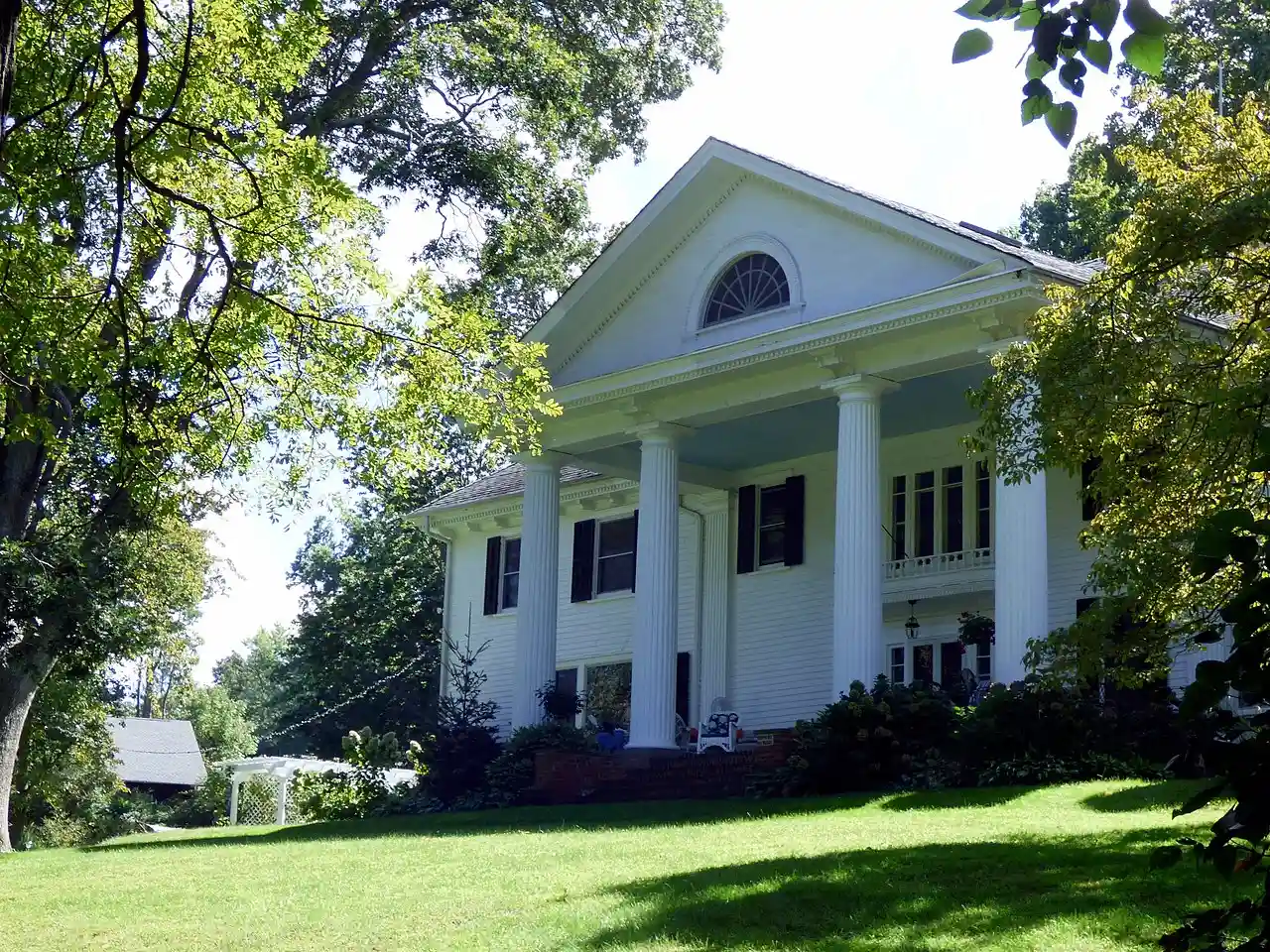 Gilsey Mansion is a historic home located at Huntington in Suffolk County, New York. It is a large, seven-bay, two-story clapboard, T-shaped residence with a hipped roof, built about 1900 in the Colonial Revival style. A four-bay, two-story gable-roofed wing projects to the rear. It features a porte cochere on tapered Doric order columns and a pedimented portico. Read more on Wikipedia