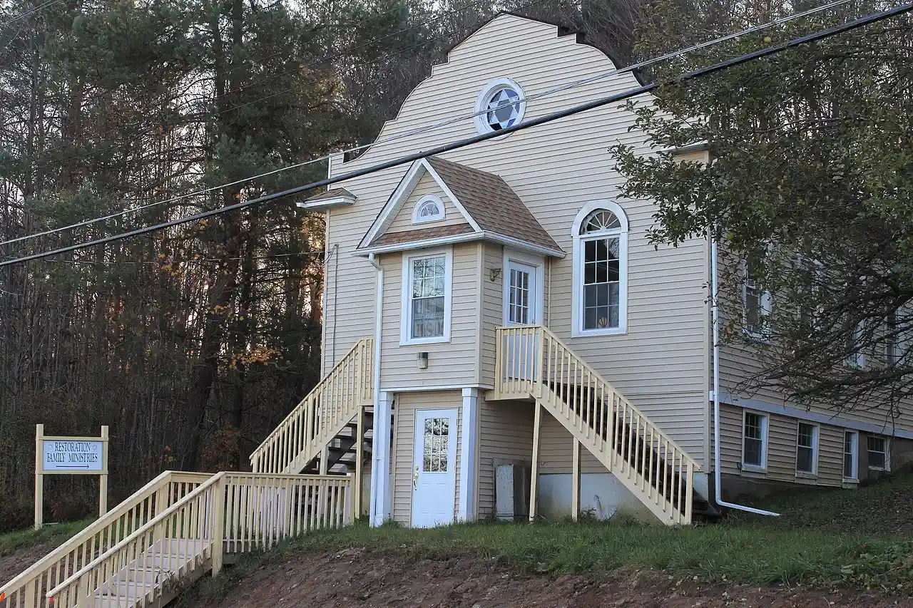 Jewish Community Center of White Sulphur Springs, also known as White Sulpher Springs Synagogue, is a historic synagogue located at White Sulphur Springs in Sullivan County, New York. It was built in 1934 and is a rectangular, 1-story building built into a hillside. It is a three-by-five-bay frame structure clad in asbestos-cement tiles. The front facade features a stepped, pedimented parapet that extends beyond the roofline. See also: Read more on Wikipedia