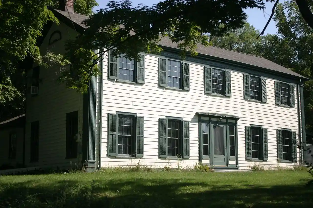 Hiawatha Farm, also known as the Levi Green and Mary Montanye House, is a historic home and farm complex located at Owego in Tioga County, New York. The two story, five bay center entrance house was built about 1825 in the transitional Federal / Greek Revival style. Also on the property an English barn dating to the 1820s, garage, and chicken house. See also: Read more on Wikipedia