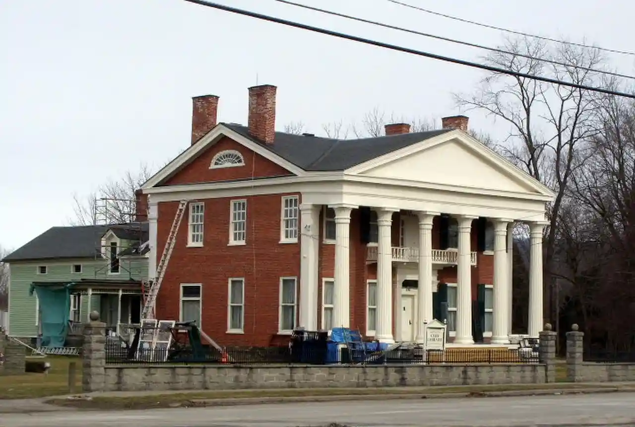 Platt-Cady Mansion is a historic home located at Nichols in Tioga County, New York. The original Federal structure was constructed about 1827. It is a large two-story brick mansion, modified at a later date with a visually dominant columned portico in the Greek Revival style. Also on the property is a large two-story carriage-and-horse barn. The Cady Library has occupied the building since 1941. See also: Read more on Wikipedia