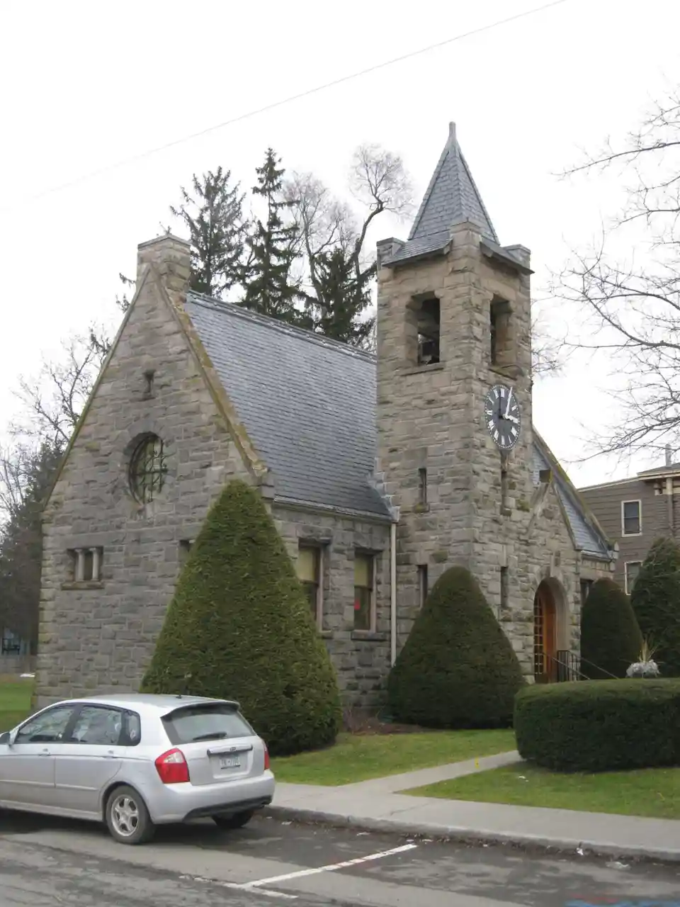 Southworth Library is a historic library building located at Dryden in Tompkins County, New York. It is a -story masonry building with a steeply pitched gable roof. It features a prominent bell tower with a Seth Thomas clock and circular windows include carved stone gargoyles. It is a distinctive, small scale example of Eclectic style civic architecture.See also: It was designed with open grid flooring in stack rooms to facilitate air circulation and two reading rooms. It was listed on the National Register of Historic Places in 1984. Read more on Wikipedia