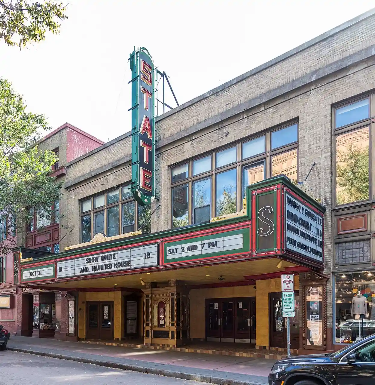 State Theatre of Ithaca is a historic, 1600-seat theatre located at Ithaca in Tompkins County, New York that hosts various events from bands, to plays, to comedy acts, to silent films, and more. Read more on Wikipedia