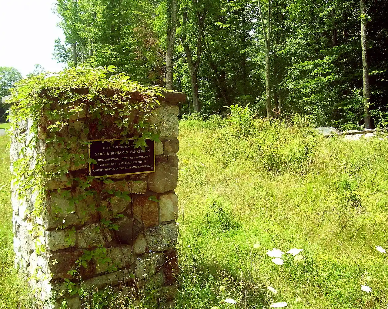 The Benjamin Van Keuren House Ruin is located at the corner of Bruyn Turnpike and Benjamin van Keuren Drive in the western portion of the Town of Shawangunk, in Ulster County, New York, United States. It was the site of the house built in 1745 by Van Keuren and his wife Sarah, early settlers of the area. He would later be elected town supervisor four times and serve in the 4th Regiment of the Ulster County Militia during the Revolutionary War. Read more on Wikipedia