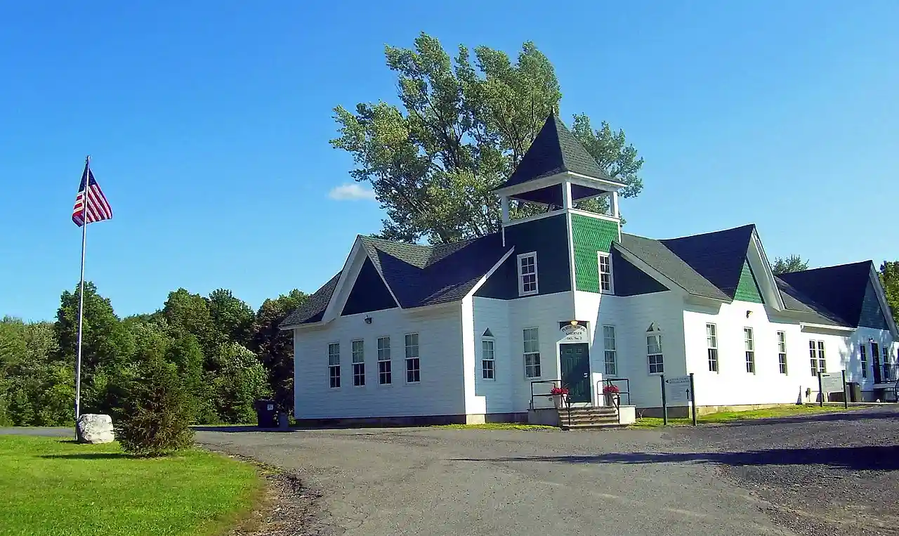 The Town of Gardiner, in Ulster County, New York, United States uses the former Gardiner Schoolhouse as its town hall. It is located on US 44/NY 55 at the east end of the hamlet of Gardiner, and houses all the departments of town government, the town court and a branch office of the New York State Police. It is built in the Queen Anne style, painted green and white. Read more on Wikipedia