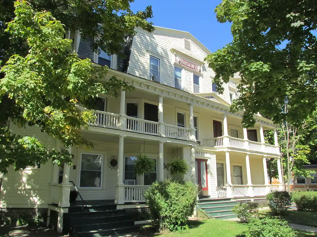 Argent Apartments is a historic apartment house located at Glens Falls, Warren County, New York. It was built about 1895 and is a rectangular, three story, frame building covered by a slate mansard roof and clapboard sheathing. At the corners are three story towers with open galleries. It features two tiered porches with turned posts and balustrades. Read more on Wikipedia