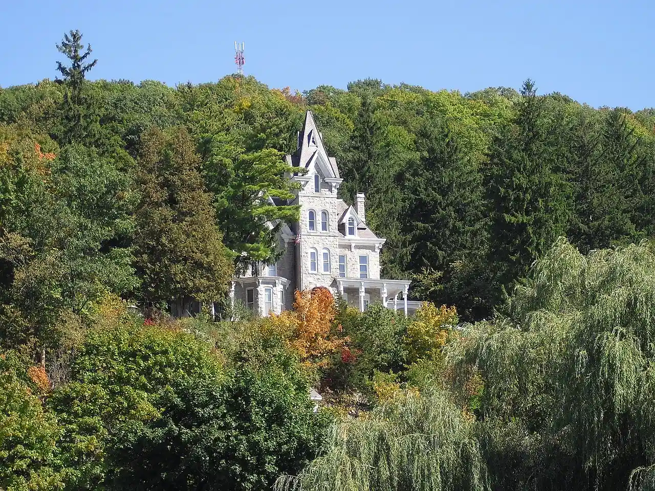 Skene Manor, listed on the National Register of Historic Places as Judge Joseph Potter House, is a historic home located at Whitehall in Washington County, New York. It was built in 1874 and is a handsome Victorian style mansion built of grey sandstone quarried from its own site with a mansard roof. It features two towers and is embellished with three flat roofed bracketed porches. The center tower is three and one half stories and once featured a large clock that has been removed. The mansion was operated as a restaurant, but is now undergoing restorations and is open for tours. See also: Read more on Wikipedia