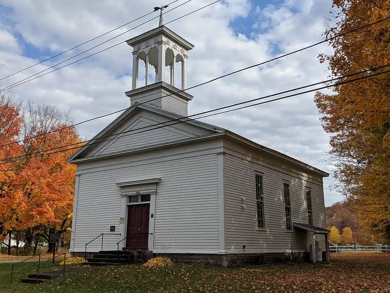 Methodist Episcopal Church of Butler is a historic former Methodist Episcopal church located at Butler Center in Wayne County, New York. It is a rectangular, gable roofed frame building designed in a vernacular Greek Revival style and built about 1836. It rests on a cobblestone foundation and is surmounted by an open belfry. Also on the property is a cemetery (non-contributing), established in 1864. Note: This includes and Accompanying 12 photographs Read more on Wikipedia