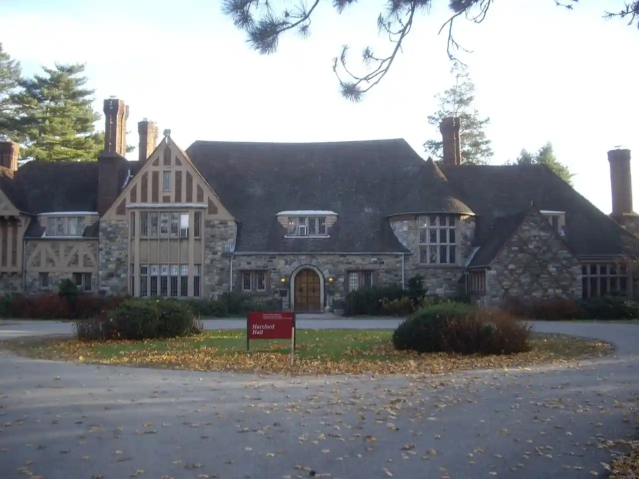 The John A. Hartford House, now known as Hartford Hall, is a historic house on the campus of Westchester Community College. It was built in 1930–32 by John A. Hartford (1872–1951), company president of the Great Atlantic and Pacific Tea Company (A&P). The house was designated a National Historic Landmark in 1977 for its association with Hartford, who oversaw the rise of A&P into the nation's first national chain grocer. and The building now houses the office of the college president, among other uses. Read more on Wikipedia