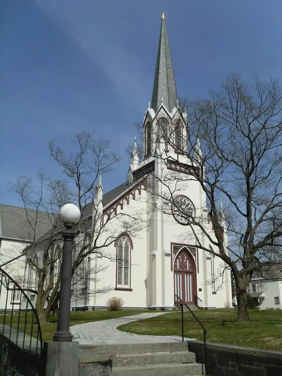 Mamaroneck United Methodist Church is a historic Methodist church located at 546 East Boston Post Road in Mamaroneck, Westchester County, New York. It was built in 1859 and is a one-story, Gothic Revival style building of wood-frame construction with a gable roof. It is rectangular in form with a rear, two story, transecting wing built in 1869. It features a semi-engaged central tower flanked by stylized buttresses and topped by an octagonal spire. Note: This includes and Accompanying 20 photographs Read more on Wikipedia