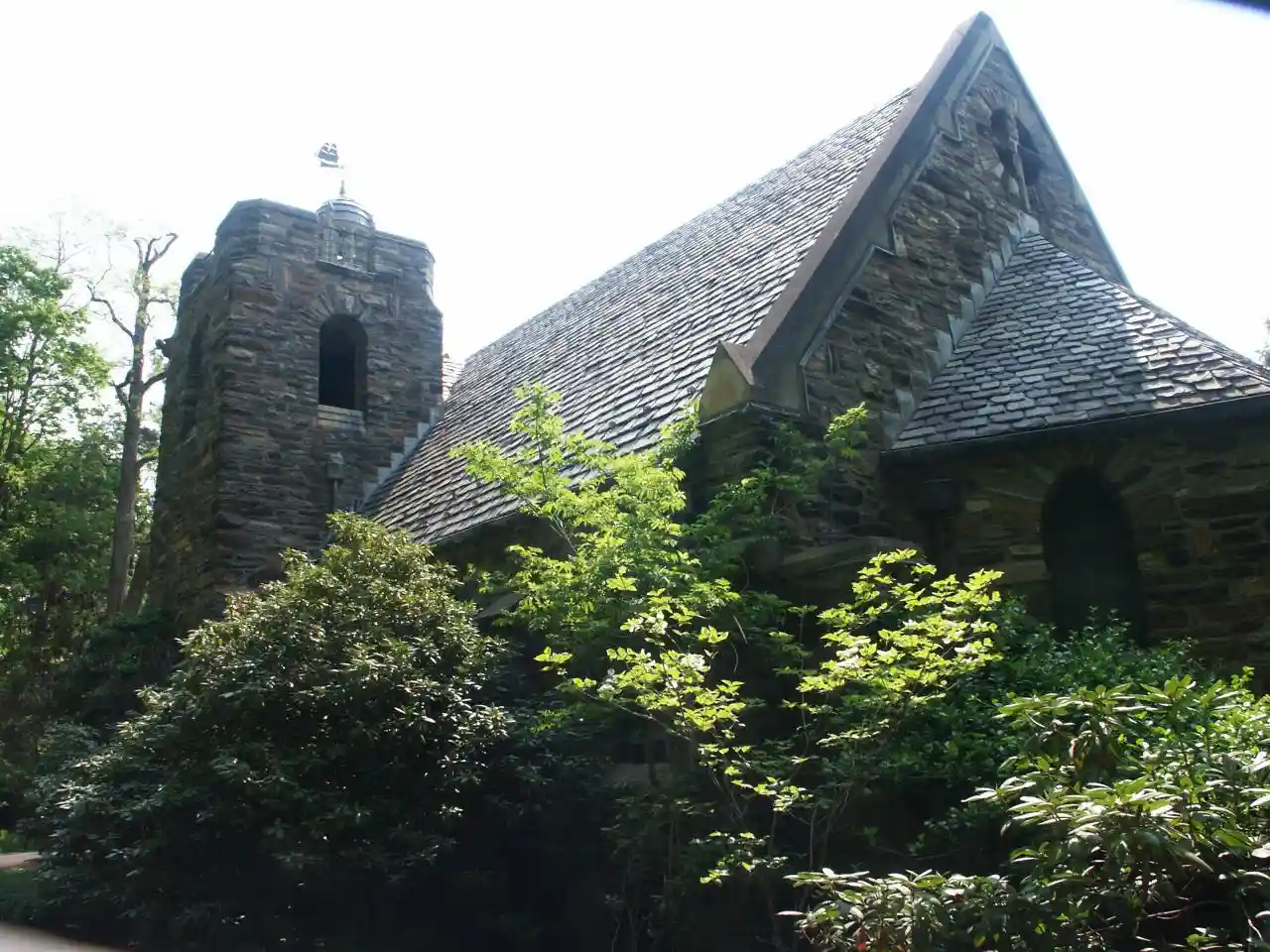 Garrett Memorial Chapel is a small Church in the Norman Gothic Style located on Bluff Point at Lake Keuka, in the town of Jerusalem, in Yates County, New York. On 30 March 2001 the Chapel was added to the National Register of Historic Places. Read more on Wikipedia