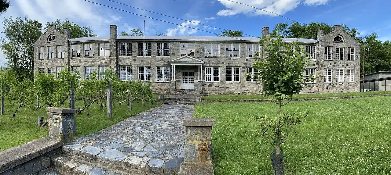 Lansing School is a historic school building located at Lansing, Ashe County, North Carolina. It was built in 1937-1938 by the Works Progress Administration, and is a two-story, 19 bay wide, building constructed of random coursed native granite blocks. The building features modest Colonial Revival style details. The building has a standing seam metal hipped roof with small gabled attic dormers. Also on the property is a two-story, four-bay, brick building built in 1952-53 to serve as high school classrooms. Read more on Wikipedia