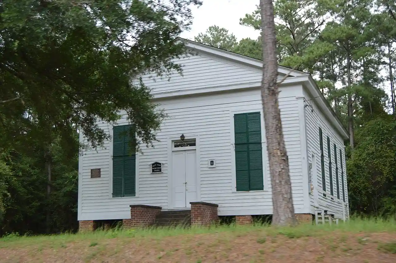 South River Presbyterian Church is a historic Presbyterian church located near Garland, Bladen County, North Carolina. It was built between 1855 and 1857, and is a one-story, rectangular frame Greek Revival-style church. It has a pedimented roof and is sheathed in weatherboard. Read more on Wikipedia