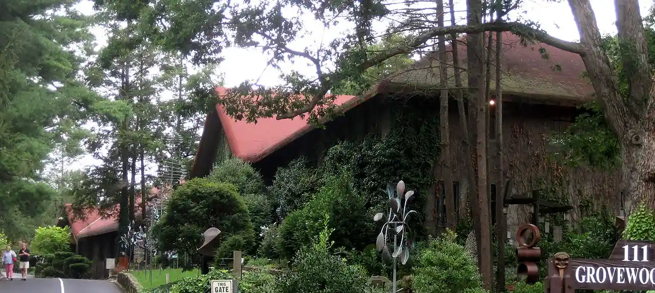 Biltmore Industries, Inc., also known as Biltmore Homespun Shops, is a historic industrial complex located adjacent to the Omni Grove Park Inn in Asheville, Buncombe County, North Carolina, now known as Grovewood Village. Biltmore Industries was started by Eleanor Vance and Charlotte Yale, missionaries who moved to Asheville, NC in 1901. The complex of seven buildings were built about 1917 by Fred Loring Seely, and are constructed of hollow ceramic tile with stuccoed exterior wall surfaces. The buildings are The Eleanor Vance Building (1917), Charlotte Yale Building (1917), Carding and Spinning Building (1917), (Former) Weavers' Building (now Antique Car Museum) (1923), Boiler House (1917), Gatehouse (former Woodworking Building), and Guardhouse (1917). The complex produced high-quality crafts and fine hand-woven wool cloth. Read more on Wikipedia