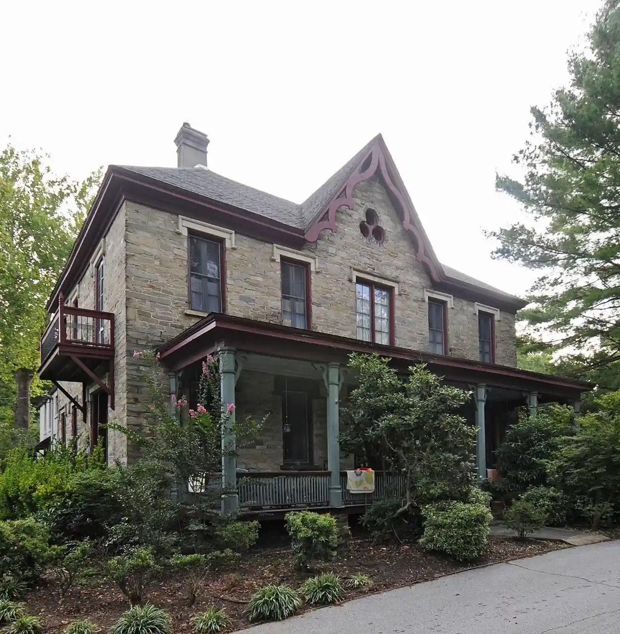 Blake House, also known as Newington, Royal Pines, and Joseph B. Pyatt House, is a historic home located at Arden, Buncombe County, North Carolina. It was built about 1850, and is a two-story, double pile stone house in the Gothic Revival style. The main block is five bays wide and has a hipped roof. The center hall plan interior features Greek Revival-influenced interior finishes. A rear ell was added in 1907. Read more on Wikipedia