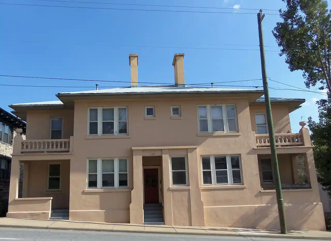 Building at 140 Biltmore Avenue is a historic residential building located at Asheville, Buncombe County, North Carolina. It is one of a row of granite apartment buildings on the lower end of Biltmore Avenue. It was built in 1915, and is a two-story, uncoursed rubble granite apartment building covered with a smooth, tan stucco. It features a low, hipped roof, two story porch on either side, and four chimney stacks. Read more on Wikipedia
