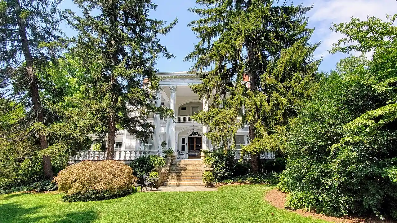 Dr. Carl V. Reynolds House, now known as the Albemarle Inn, is a historic home located at Asheville, Buncombe County, North Carolina. It was built in 1909, and is a three-story, square frame dwelling in the Colonial Revival / Neoclassical style. It features a flat roofed portico with pairs of fluted Corinthian order columns and half-round pilasters. The home was converted into apartments in the 1940s and now houses an inn. Read more on Wikipedia